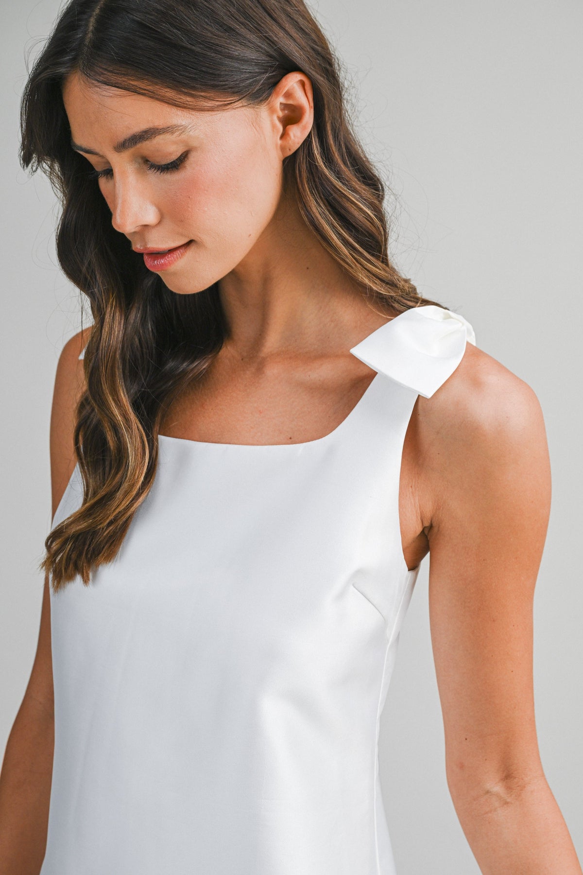 The Rosalie Ribbon Mini Dress - Soft structure with a romantic finish.