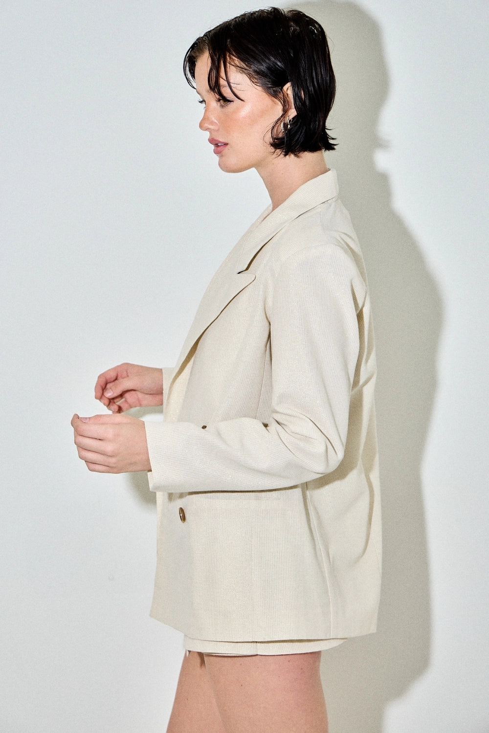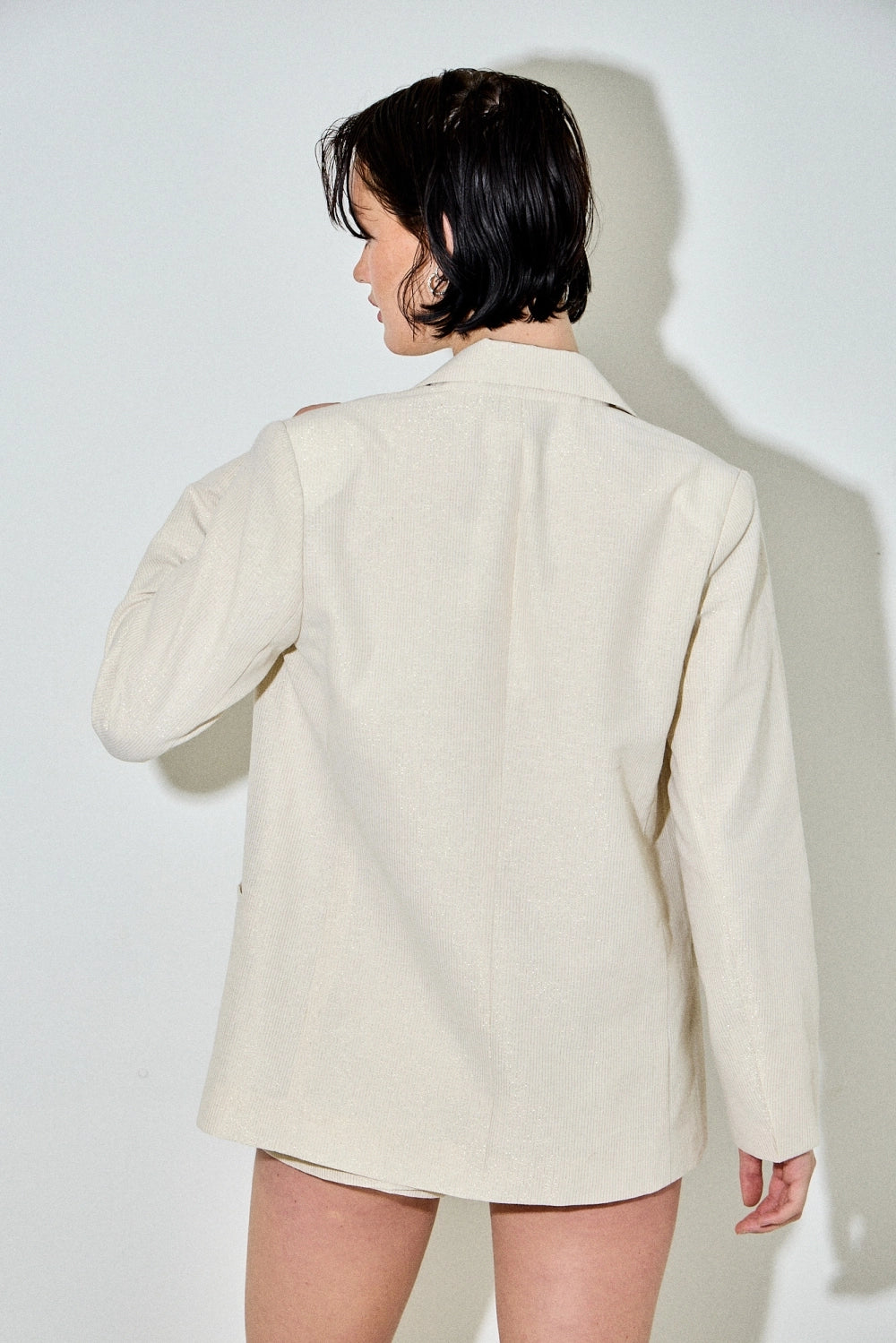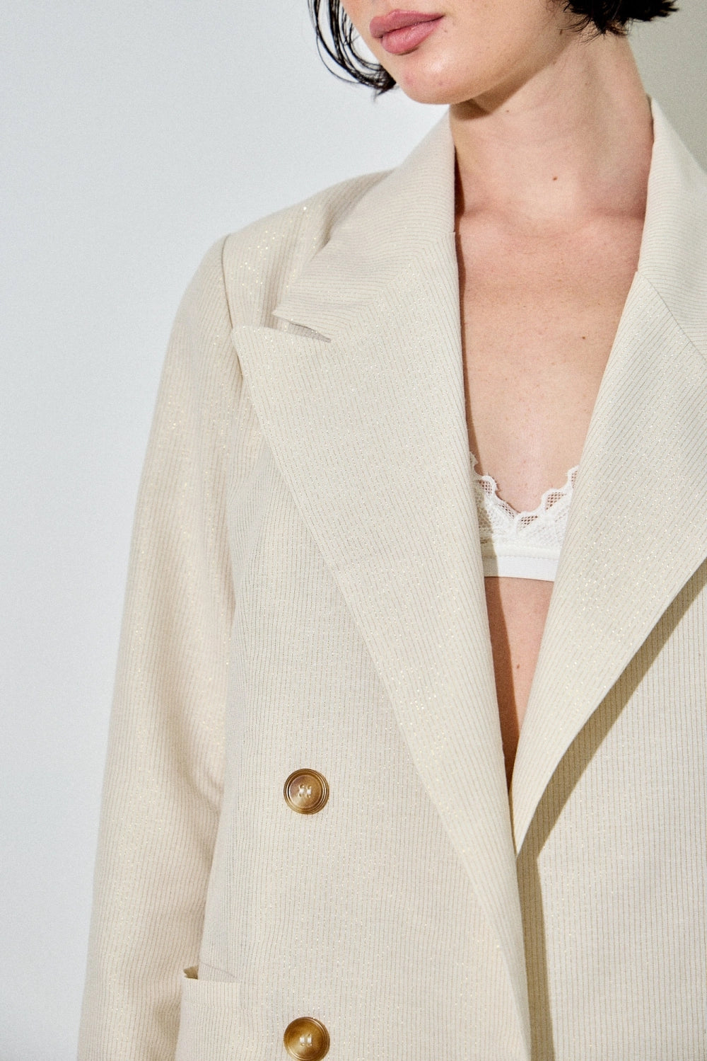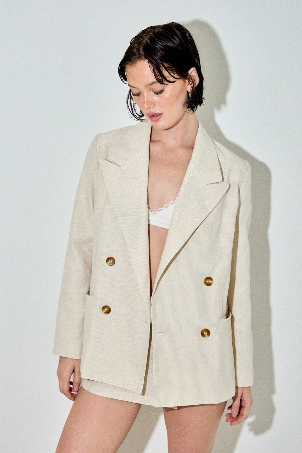 The Aurelia Metallic Blazer - A tailored classic with a refined glow.