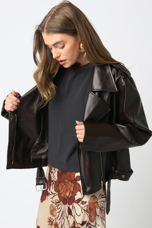 A leather moment you didn’t know you needed — until now. The Alessandra Leather Jacket is your edgy essential for city nights and main character mornings. Crafted from sleek PU leather, it features an oversized silhouette with exaggerated lapels, zipper-front closure, and a waist-cinching belt that lets you wear it loose or snatched. Throw her on over a bodysuit, slinky dress, or your go-to cargos — she doesn’t just complete the outfit, she is the outfit.
