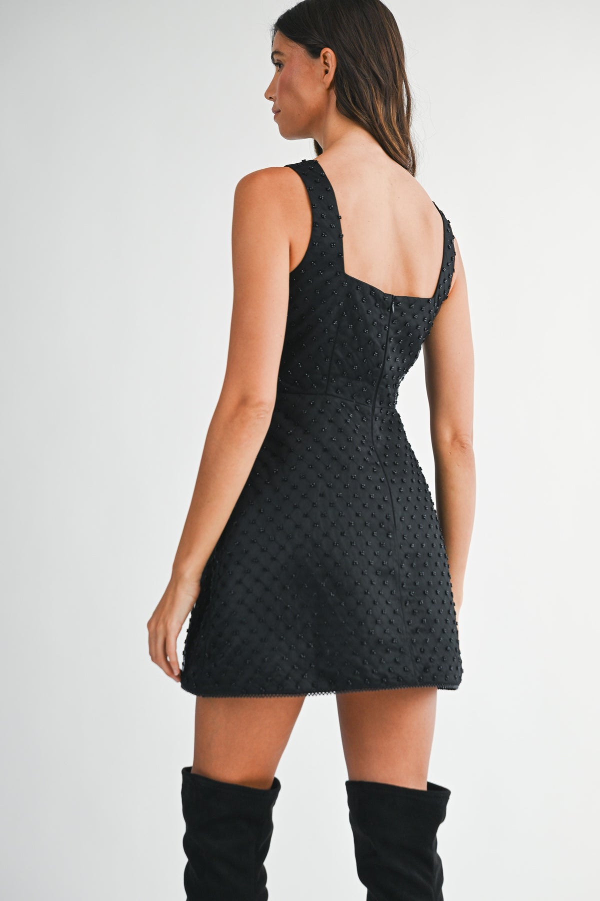 Make an entrance in the Alexia Beaded Mini Dress — the ultimate neutral moment for your next celebration. This sleeveless mini dress features a modern square neckline and a flattering fit-and-flare silhouette, fully adorned in a delicate mesh overlay with a grid of pearl-inspired beaded embellishments. The invisible back zipper and full lining ensure a smooth, comfortable fit, while the intricate beading adds subtle sparkle from every angle.
