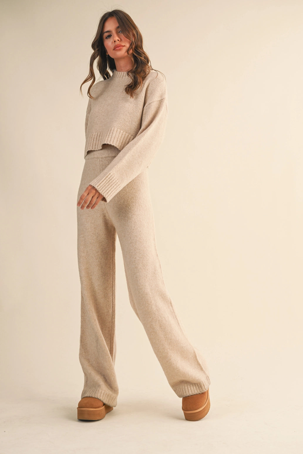 Stay warm, chic, and effortlessly put together in the Daphne Set — your new go-to for cozy days and off-duty style. This ultra-soft matching set features a relaxed, cropped sweater top and wide-leg joggers in a dreamy charcoal melange knit. Whether you're lounging at home, running errands, or heading out for coffee, this set is the definition of comfy meets cool.