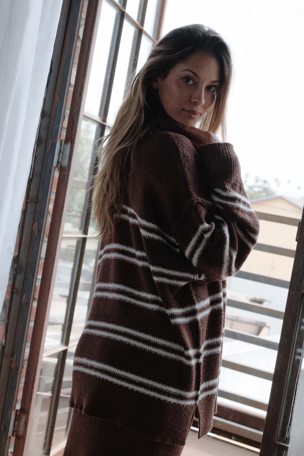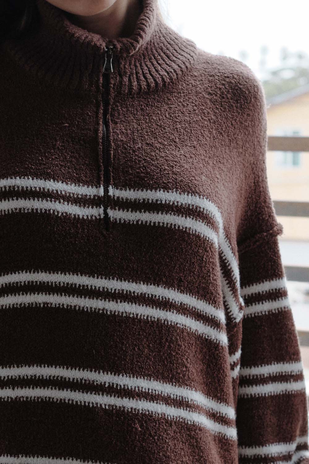 Cozy, textured, and effortlessly elevated — the Faye Quarter Zip Sweater is your new cold-weather essential. Designed with a soft, boucle-style knit and timeless stripe detailing, this sweater blends relaxed comfort with a polished silhouette.