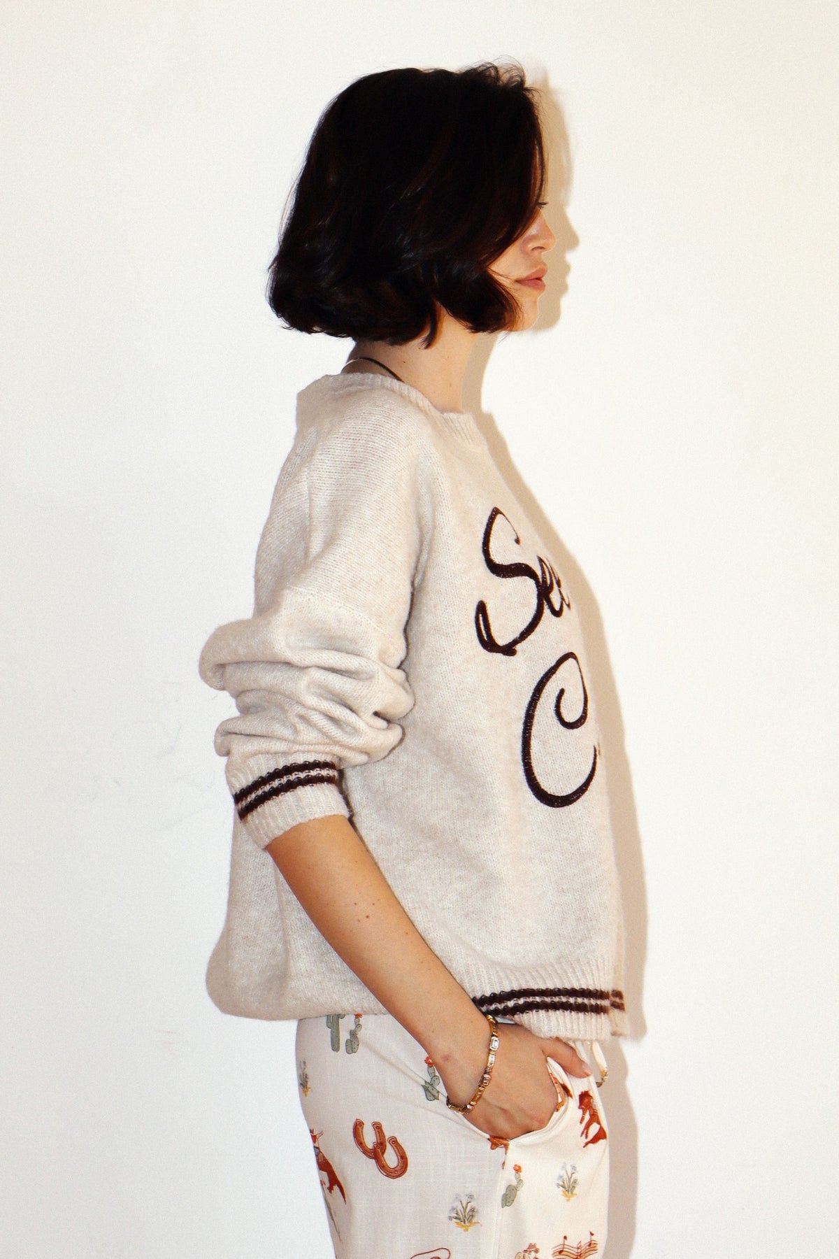 Say hello to your new favorite soft-knit moment. The See You Cowboy Sweater is a relaxed, Western-inspired pullover designed with a plush, brushed texture and the bold “See you, Cowboy!” script across the front. It’s equal parts playful and cozy — the perfect throw-on for casual days, chilly nights, and everything in between.