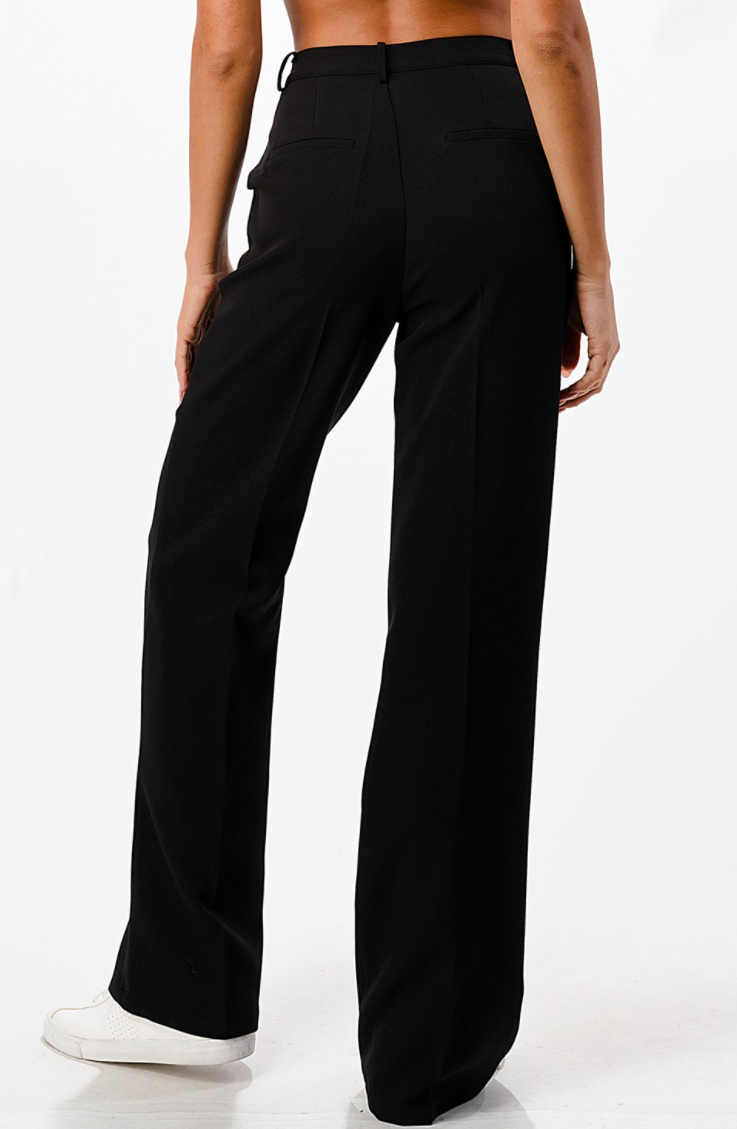 Mary's Wide Leg Work Pants are the perfect work pants. These wide leg tailored pants are so trendy right now and can be easily dressed up with a crop top and heels for going out. These pants come with a high waisted fit and come in this sharp color black. These have classic belt loops with a zipper closure in the front.