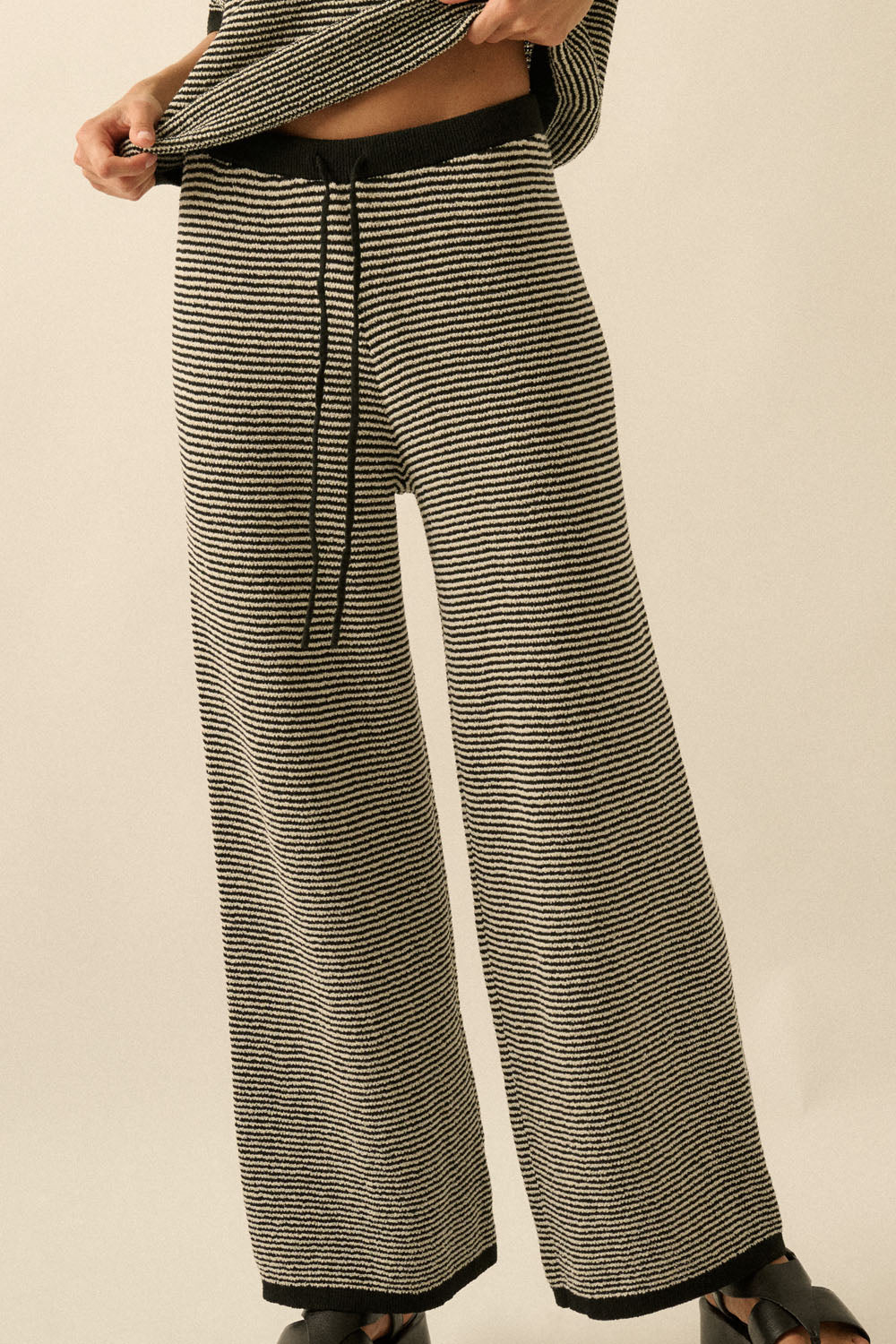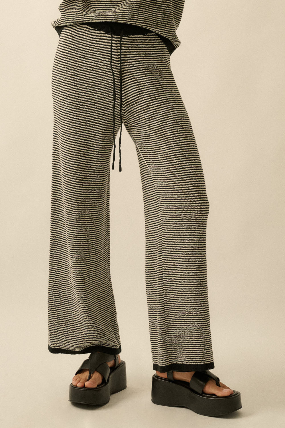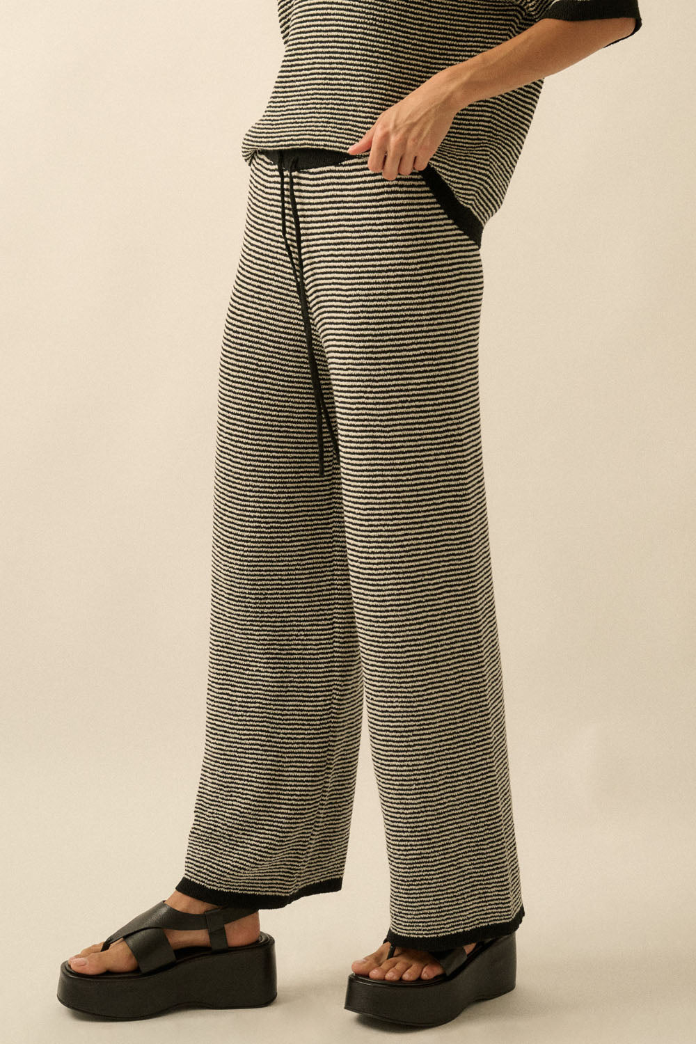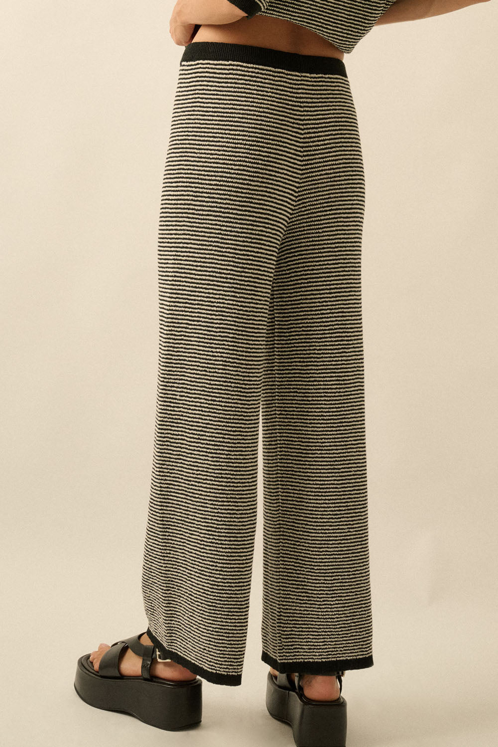Finished with subtle stripe texture and contrast trim detailing, the Naya Knit Pant pairs perfectly with the matching Naya Ribbed Knit Top for a coordinated set that feels equal parts relaxed and refined.